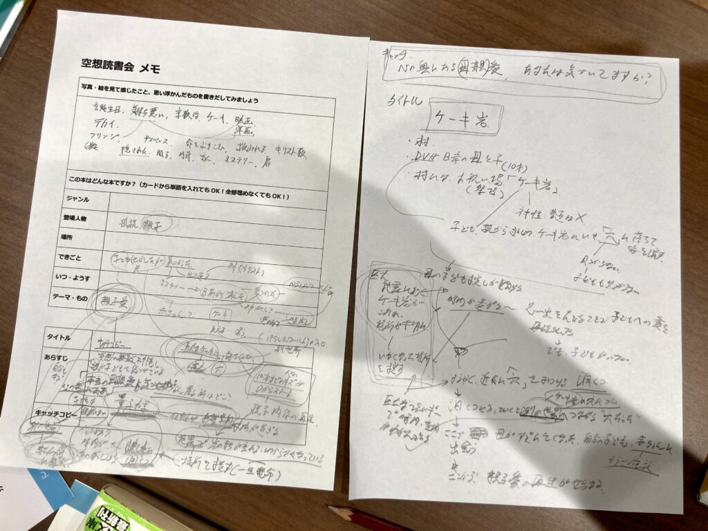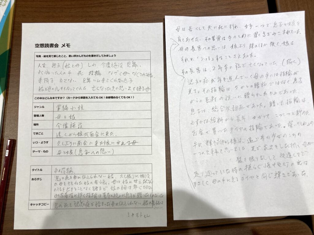 こちらで用意した写真や絵を選んでもらい、この表紙の本が書店に並んでいたら一体どんなあらすじでどんなタイトルか。